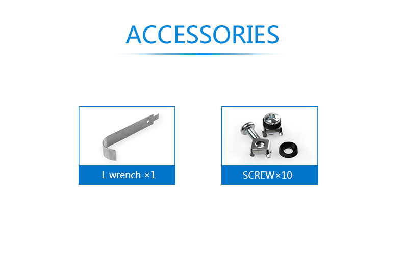Comply with EIA-310-E, IEC297-2, DIN41491, PART1, DIN41494 PART7, GB/T3047.2-92 standard, compatible with ETSI standard.